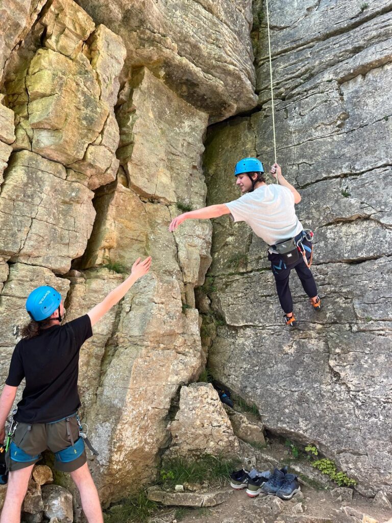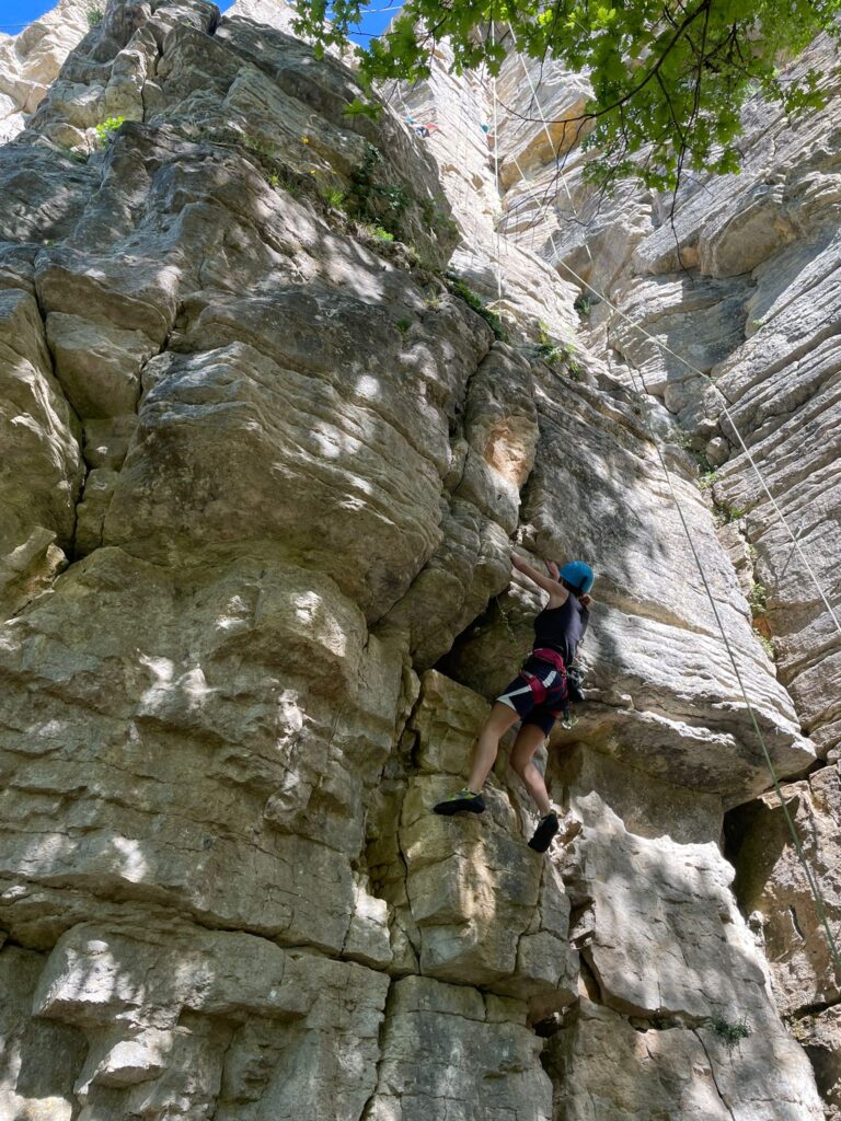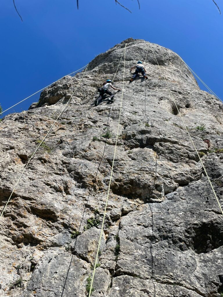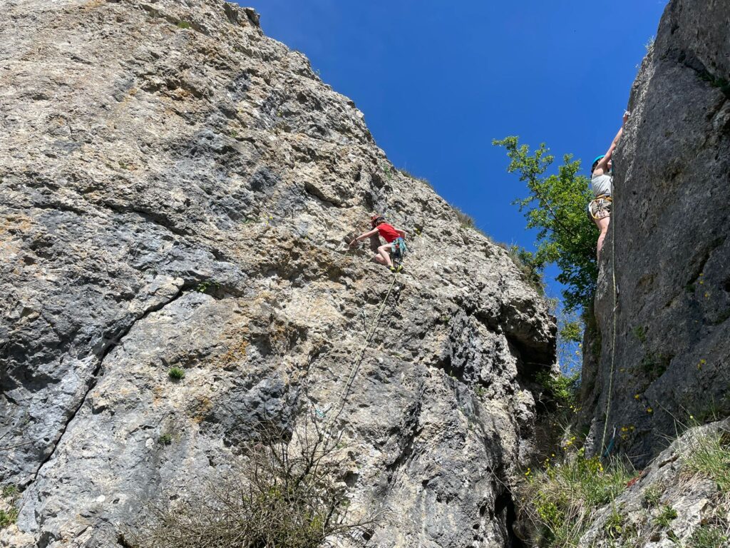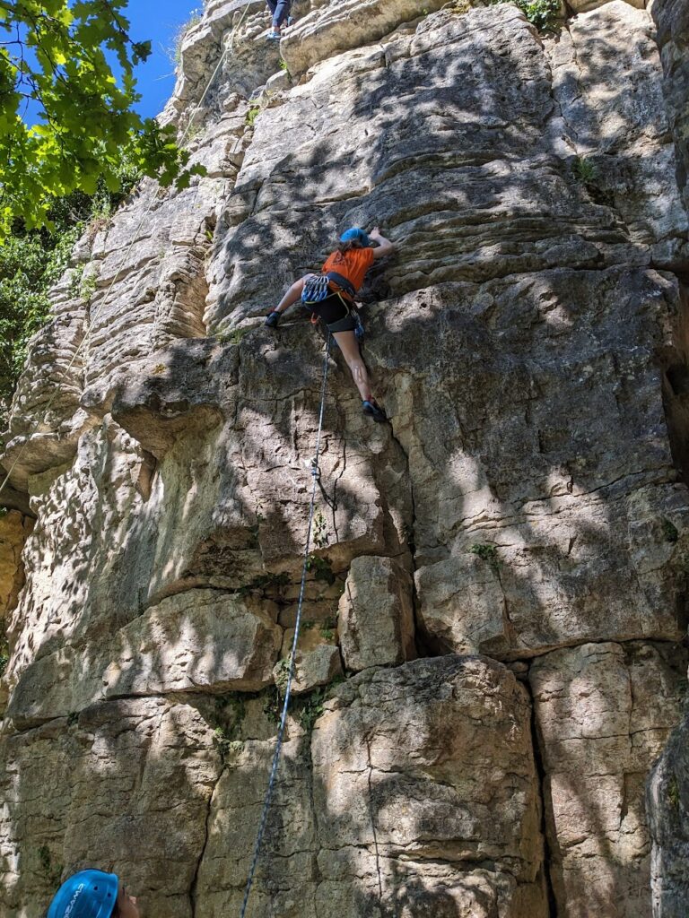 L’ambiance a été excellente tout au long du séjour, avec un très bon niveau de grimpe : beaucoup de voies dans le 6, et même quelques 7 pour les plus motivés. Les temps de repos ont aussi été appréciés, notamment les siestes en hamac, la séance piscine du mercredi après-midi, la visite de la ville d’Autun avec quelques emplettes le mercredi après-midi, ainsi qu’un goûter en terrasse. Les soirées se terminaient souvent par un foot, babyfoot, puis des parties endiablées de Loup-Garou ou d’autres jeux.