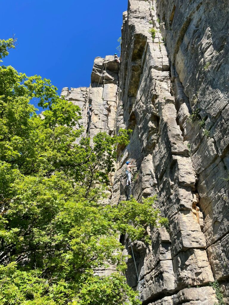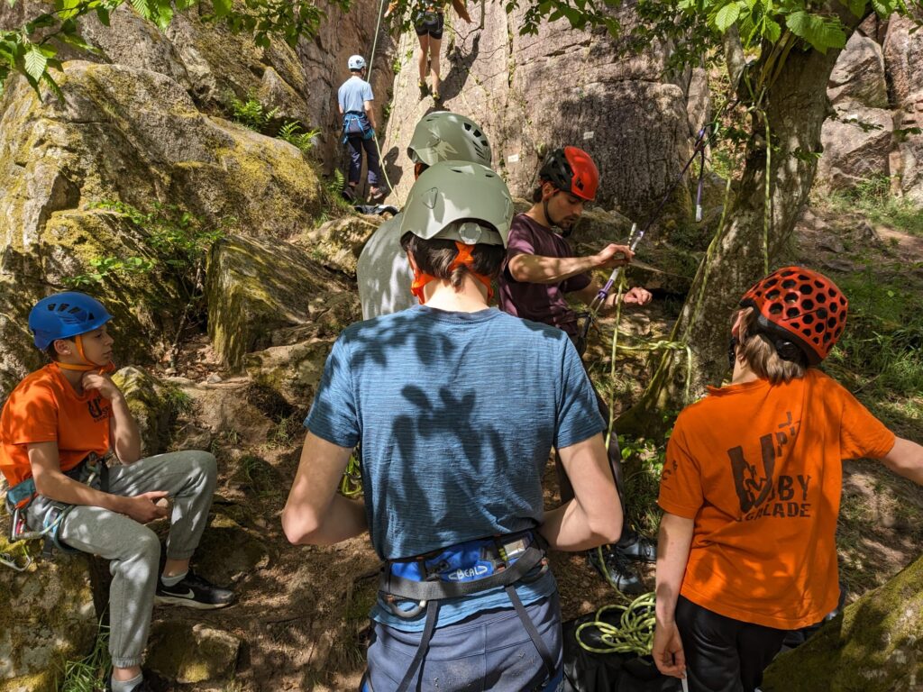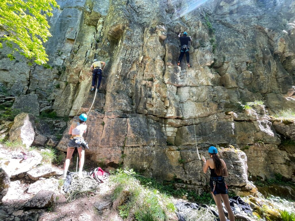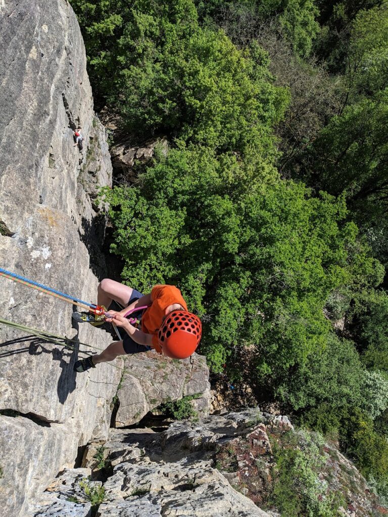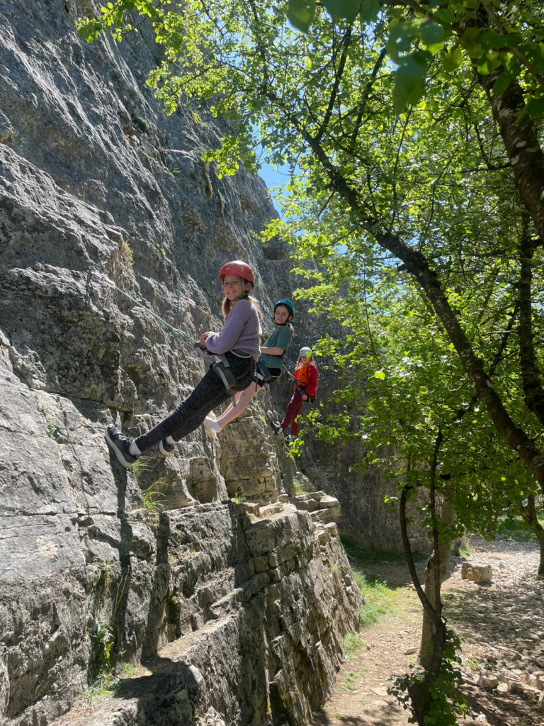 L’ambiance a été excellente tout au long du séjour, avec un très bon niveau de grimpe : beaucoup de voies dans le 6, et même quelques 7 pour les plus motivés. Les temps de repos ont aussi été appréciés, notamment les siestes en hamac, la séance piscine du mercredi après-midi, la visite de la ville d’Autun avec quelques emplettes le mercredi après-midi, ainsi qu’un goûter en terrasse. Les soirées se terminaient souvent par un foot, babyfoot, puis des parties endiablées de Loup-Garou ou d’autres jeux.