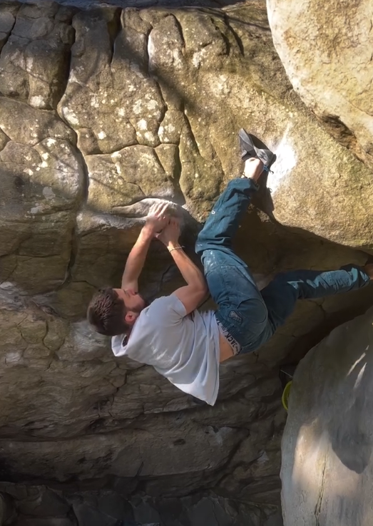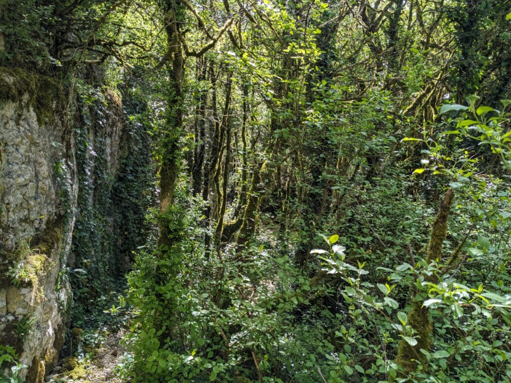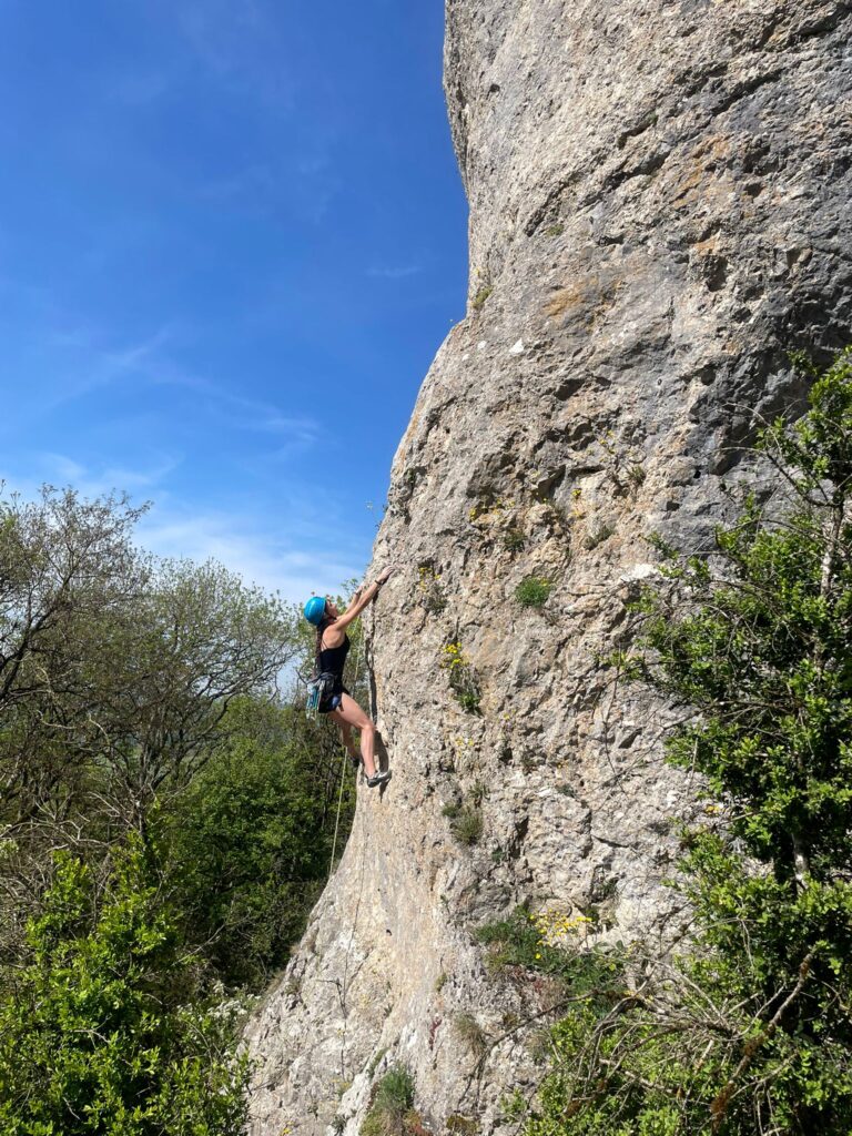 Un site calcaire à l’ambiance particulière, une cité ensevelie sous la mousse. La roche, un calcaire avec des concrétions, peut être un peu agressive, et les pieds de voies ne sont pas toujours très confortables. Malgré cela, le site reste très joli. Mathis y a réalisé une belle croix dans un 7b+ assez bloc, une belle récompense après un travail acharné.